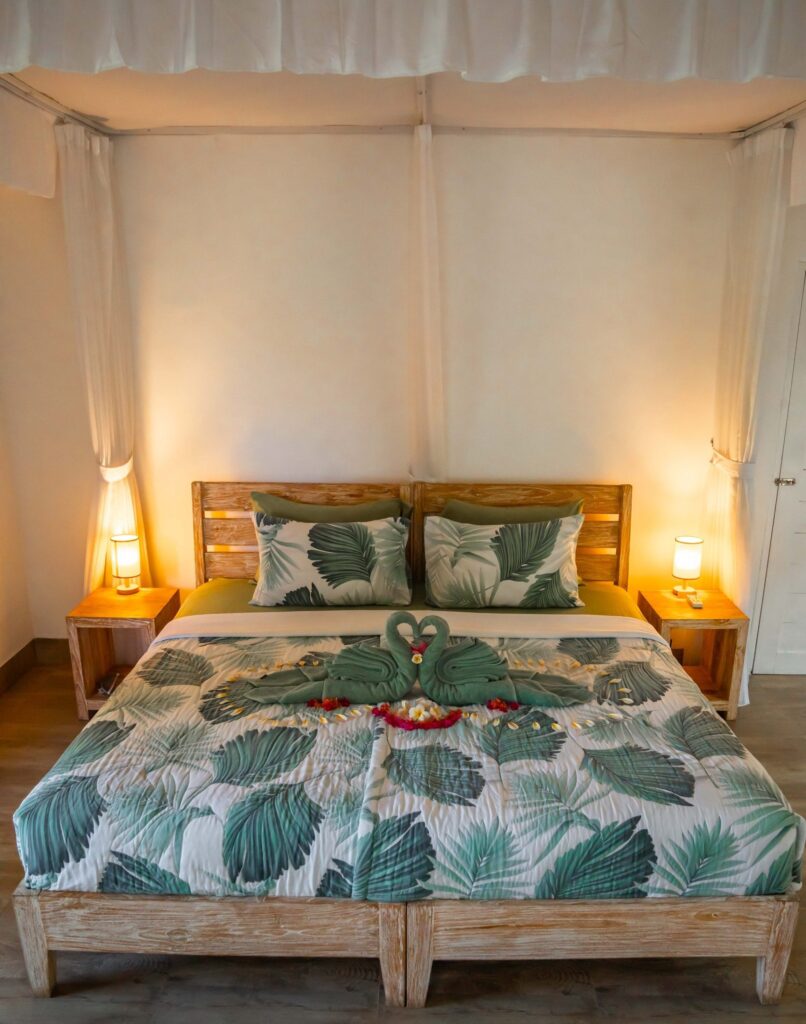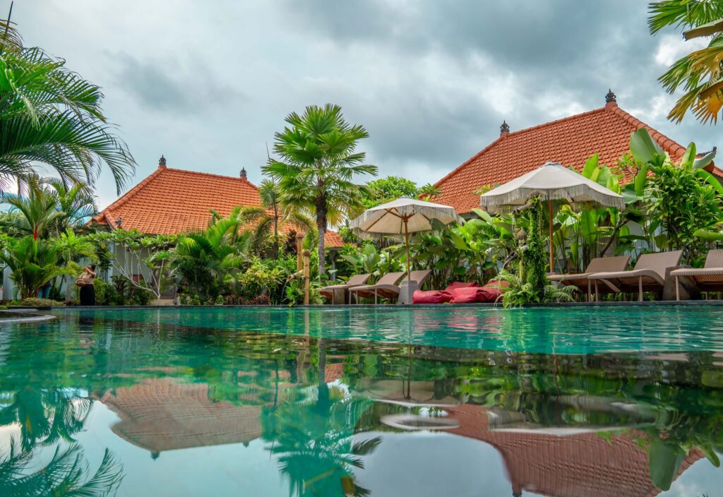 Tulus Hati, the private boutique retreat, translates to “sincere pure heart.” Designed with intention, this serene haven embodies peace, safety, and comfort. Its circular layout symbolises a mother’s womb—a space for new beginnings and personal growth. Often hosting yoga and holistic wellness retreats, Tulus Hati offers an idyllic setting to relax and recharge during your five child-free days. Enjoy a healthy buffet breakfast, send the kids to school on the shuttle bus, and indulge in yoga, breath-work, meditation, or a soothing massage. You can also unwind by the pool or explore Ubud’s vibrant surroundings using our curated Top Ten for inspiration.